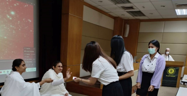 The PSHE Department organised a workshop for students of year 11 & 12. The organiser expressed their appreciation... It was an honor to host our esteemed guest speaker Sister Gopi Patel, a distinguished senior Raja Yogi hailing from the UK. We also had with us Ms. Sheetal and Ms. Prajwal who had initiated the workshop along with Ms. Neelu, Ms. Sujata and Ms. Disha from the Brahma Kumaris organisation. Sister Gopi's journey has been one defined by a lifelong commitment to spiritual growth and inner leadership. Her unwavering dedication to personal development and self-mastery has not only transformed her own life but has also served as a guiding light for countless individuals worldwide. At the workshop, she stood before us as a beacon of inspiration, encouraging our students and teachers present, to unlock their true potential and create positive change in our lives and communities. (click) "The workshop with Sr Gopi was truly an enlightening experience. Their insightful views on mindfulness and spiritual growth left a lasting impact, and their short exercises about virtues gave a chance for self reflection. The peaceful atmosphere and their warm guidance made it a very memorable event." Kamna School Captain Modern International School of Bangkok 18 September 2023(4.00-5.30 pm.) Online, "Master of your emotion for life success" hosted by ICBC