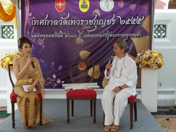 วันวิสาขบูชา(วันที่ 4-5 มิ.ย.2555) การให้สัมภาษณ์ ในงานฉลองวันวิสาขบูชา และพุทธชยันตี วัดเทวราชกุญชร 2012 มูลนิธิ บราห์มา กุมารี ราชาโยคะ ได้รับเชิญจากเขตดุสิตให้เข้าไปร่วมฉลองเทศกาลสำคัญโดยการเปิดบูธกิจกรรมทำนายคุณธรรมและเกมงูและบันไดชีวิตและได้เชิญชวนประชาชนร่วมบริจาคความสงบ 5 นาทีในเวทีย่อย มีพิธีกรมาสัมภาษณ์เกี่ยวกับการสร้างความคิดเพื่อพลังแห่งความสงบ รวมทั้งหลักการของบราห์มา กุมารี ในการสอนบทเรียนราชาโยคะ การทำสมาธิแบบเปิดตา และประโยชน์ที่ได้รับ คุณนันท์นภัสได้อธิบายว่า จิตใจจะไม่ถูกรบกวนจากความคิดที่ปรากฏขึ้นมาจากจิตใต้สำนึก ซึ่งมีผู้คนจำนวนมากมายที่นั่งสมาธิแล้วไม่สงบ การฝึกจิตแบบราชาโยคะจึงช่วยทำให้เป็นศาสนิกที่ดี เป็นผู้ครองเรือนที่ความเพียรพยายามในการปฏิบัติธรรมให้เข้าสู่เป้าหมายได้อย่างมุ่งมั่นและสมดุล และแล้วความมั่นคงภายในก็จะนำไปสู่ความสำเร็จตามปรารถนา แน่นอนการฝึกจิตนั้นช่วยให้จิตใจเข้มแข็ง มีพลานามัยดี จนกลายเป็นสุขภาวะที่ทุกคนในทุกศาสนา สามารถใช้ความคิดที่เป็นบวกได้อย่างดี เพราะเป็นการควบคุมจิตใจอย่างเป็นธรรมชาติ แม้กระทั่งการนอนหลับที่ไม่ถูกรบกวนจาก 'ฝันร้าย' จึงจำเป็นอย่างยิ่งที่จะไม่ให้สิ่งที่เป็นลบหรือไร้สาระ เข้าไปเก็บสะสมไว้ในจิตใต้สำนึกและปรากฏขึ้นมาในเวลาที่นอนหลับ การฝึกจิตแบบราชาโยคะ ช่วยทำให้เกิดประสบการณ์ของการใช้คุณธรรมต่างๆซึ่งมีการจัดกิจกรรมส่งเสริมคุณธรรมทุกรูปแบบเพื่อทำให้เกิดความเคารพในคุณค่าของตนจนสามารถเอาชนะอุปสรรคต่างๆ |