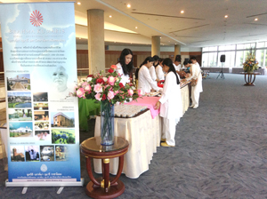 In the hall, Sr.Tim, Sr.Aui and Sr.Prapa conducted for over 50 Thai university students with sign language for deaf ones throughout the programme.