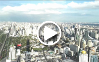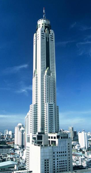 giving commentary, facing Bangok city via glass wall with over 20 students.