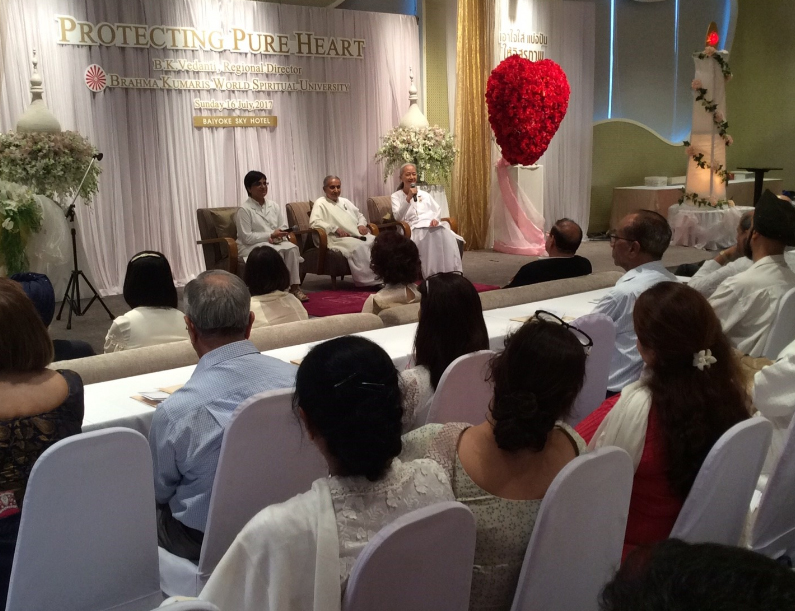 "This was our first visit to Thailand, and we saw such wonderful specialties of the BK family - we were welcomed with such love and warmth and quickly were at ease and at home with all of you. We saw the multi-fold cooperation and enthusiasm from all souls to bring success to each programme in whatever way each one could while taking maximum benefit from Vedantiben and service opportunities. It was also wonderful to see the great cooperation from the CEO of Baiyoke Sky Hotel, and his humble service of the BK family during the preparation day when he hosted all of us on the upper deck of the hotel and allowed us to enjoy dinner and yog from 74th floor room. His respect and regard for Vedantiben was also lovely to see. This is an example of what Baba means when He says to serve VIP souls who then become an instrument to help share Baba's message."