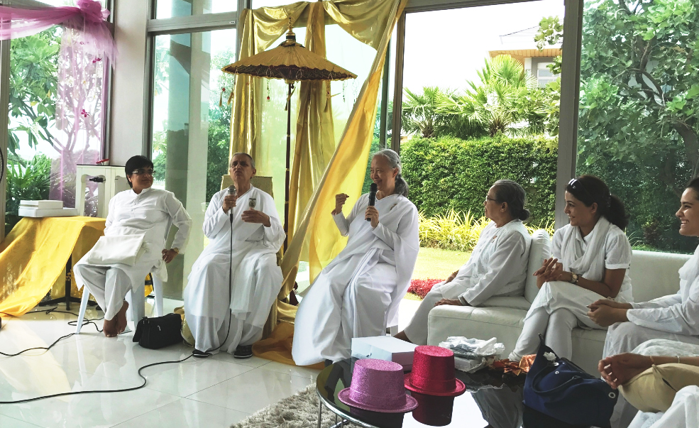 "And yet again sooner than we wished for from our dearest of all Baba, we had this kalpa’s opportunity to bask in the glory, to soak in sheer powerful and uplifting aura of Vendanti Behn - Baba’s trans-messenger soul. As we got to hear her Bhog message for Thailand we felt assured that we are moving forward and moving in direction Baba wishes for us. Although every senior’s visit gives us our powerful mirror of reflection showing us our spots we need to work on, it’s at the same time uplifting, invigorating and entertaining."