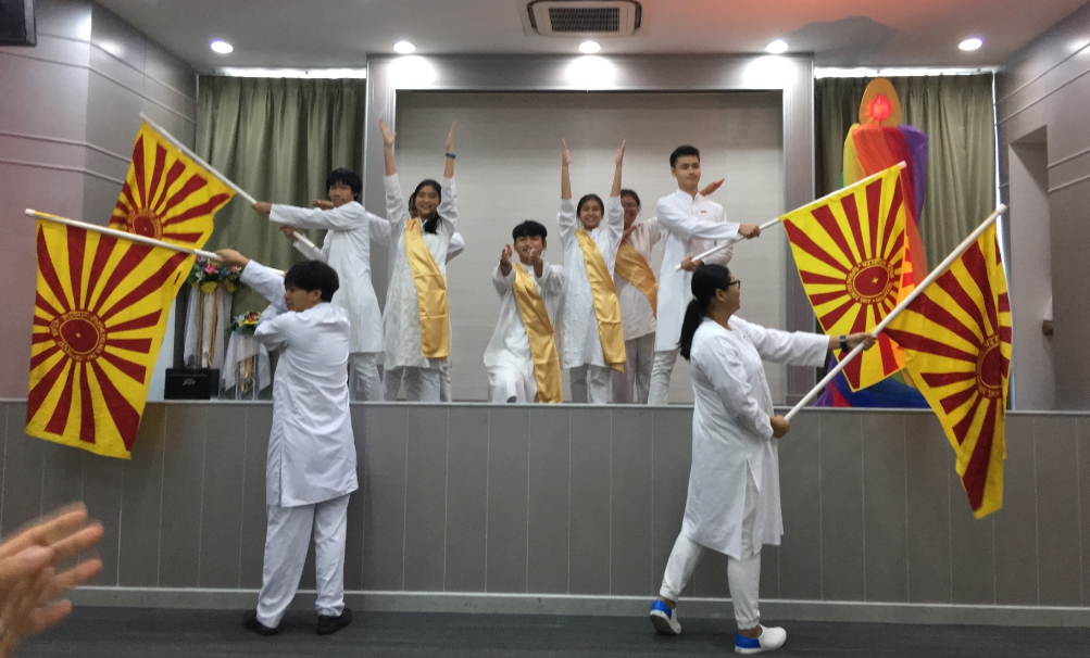 Since it was the anniversary of Raja Yoga in Thailand, we cut the cake and hoisted the flag. It was a beautiful divine scene.