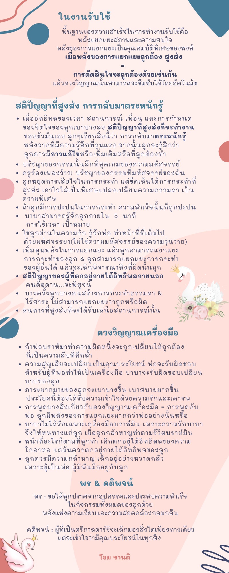 โอกาสนี้ บ้านโอมขอมอบ Clip สั้นๆ เกี่ยวกับ “หงส์ที่สูงส่ง” เป็นของขวัญ ซึ่งตรงกับสัญลักษณ์ในใจของพี่แดงลักขณา จากบ้านเปรม ช.ม.สำหรับการสร้างพลังความคิดอันส่งผลต่อชีวิตใหม่ โลกใหม่ หากพี่น้องท่านใด ปรารถนาดีจะทำ clip สั้นสำหรับสัญลักษณ์ในใจ ให้พี่น้องเรียนรู้จักกันก่อนสวรรค์จะมาถึง กรุณาแสดงความรู้สึกและเจตนาที่บริสุทธิ์มาด้วยนะคะ ในการจดจำระลึกถึงบาบาด้วยความรักต่อครอบครัวคะ พี่หล้า โอมชานติ สร้างสมความบริสุทธิ์และความสะอาดที่สมบูรณ์
