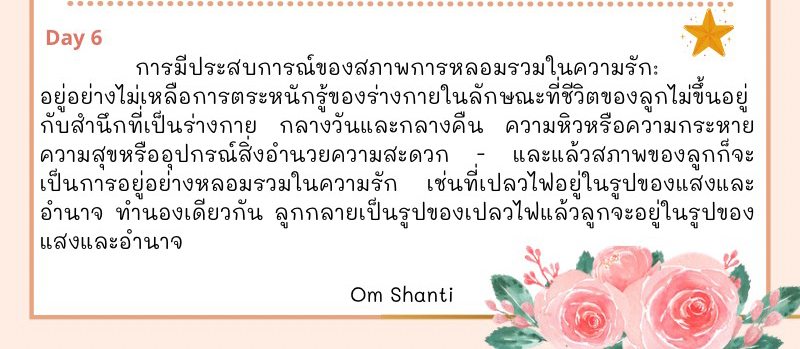 ขอบคุณทีมแปล(พี่ภา พี่ชัย น้องโสม) จากท้ายบทมูร์ลี 31 วัน/ 31 ประการ ในเดือนมกราคม เพื่อสัมผัสสภาพของการหลอมรวมในความรัก โดยมีน้องอุ๋ยจากปัตตานี แต่งแต้มสีต่างๆ อย่างสร้างสรรค์