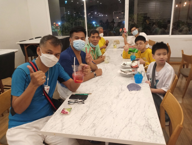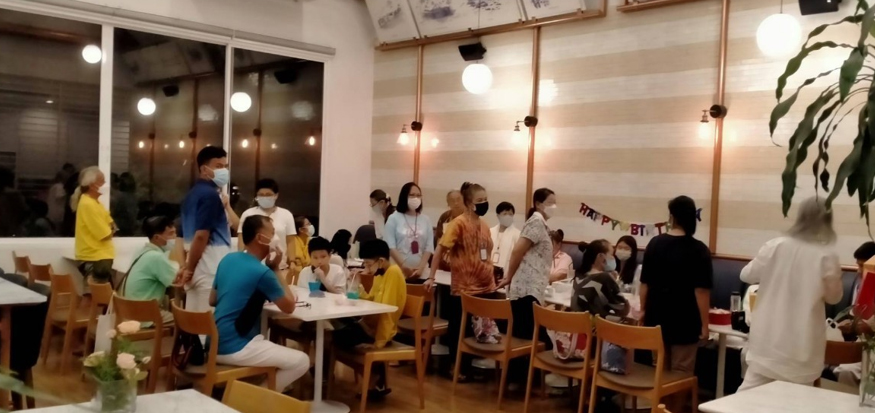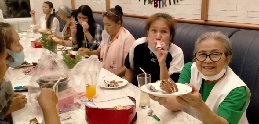 คืนนั้นเราจบรายการที่โรงงานช็อกโกเลต (Chocolate Factory) หน้าบ้าน ทำกิจกรรมกลุ่มสีแดง ‘พลังทางจิตวิญญาณทั้ง 8’ และตัดเค้กฉลองวันเกิดของเดือนมีนาคม (แม่เก๋, แม่ปุ้ม)