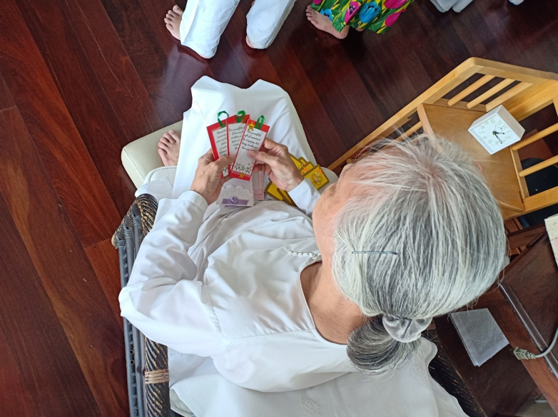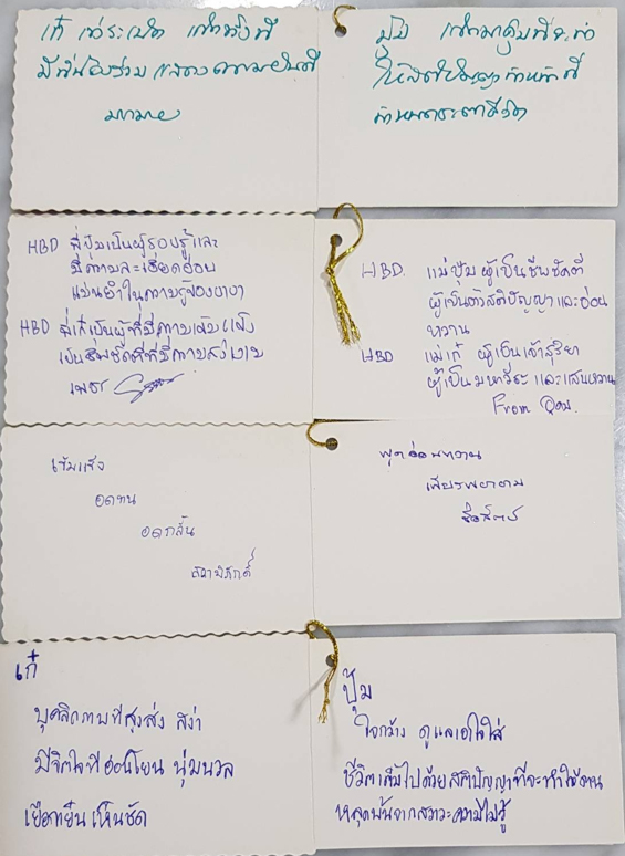 แม่เก๋วาดภาพบนกล่องของขวัญให้ครอบครัว พี่น้องเขียนพรวันเกิดให้แม่เก๋และแม่ปุ้ม