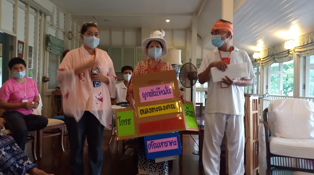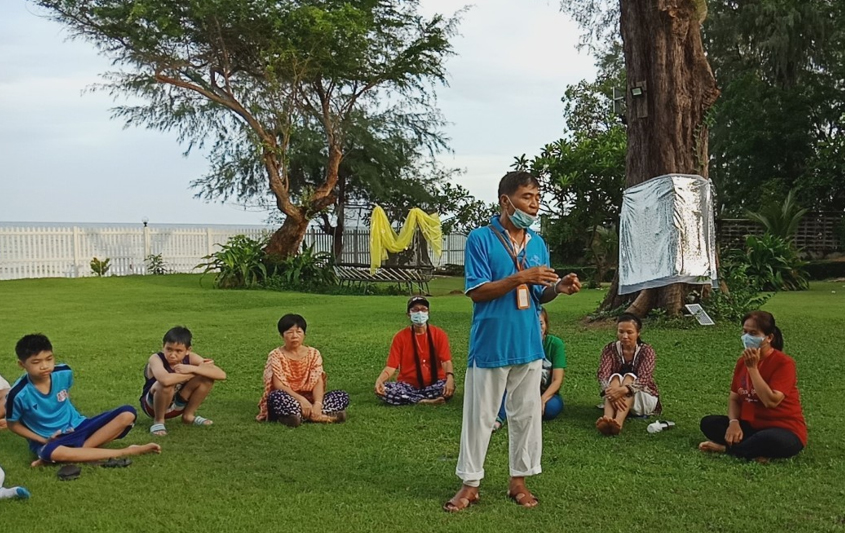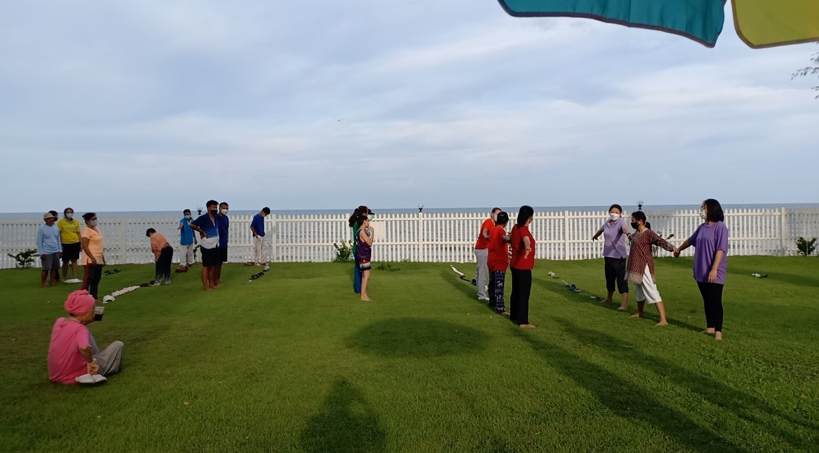 หลังอาหารเช้า เริ่มกิจกรรมกลุ่มสีส้ม ‘ความบริสุทธิ์ เอาชนะกิเลสทั้ง 5’