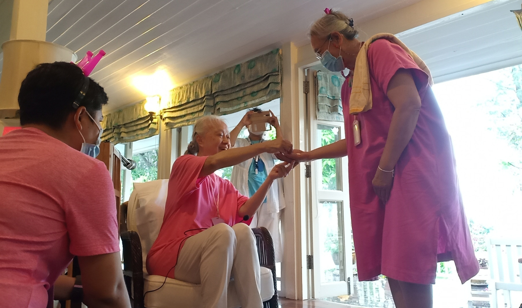กลุ่มสีชมพู มีพี่หล้า พี่อ้อยและ น้องเหมียวได้แบ่งปันพรและของขวัญให้กัน