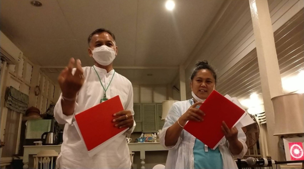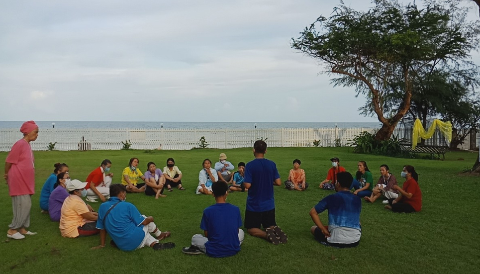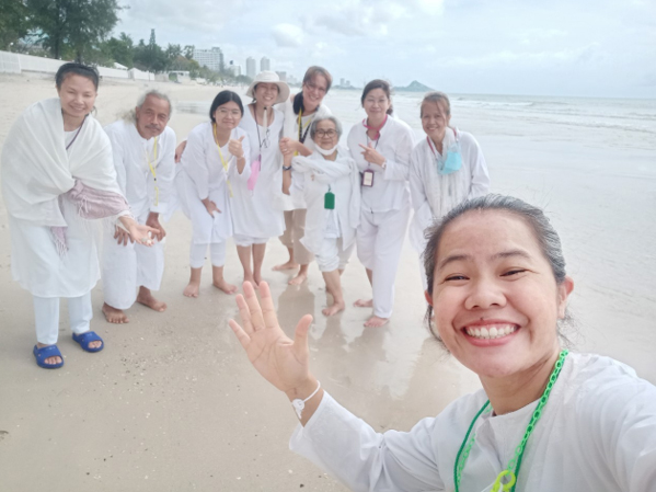 **เพื่อให้สอดคล้องกับมาตรการป้องกันโรคระบาดในการชุมนุม น้องเหมียวพยาบาลมืออาชีพทำหน้าที่ตรวจโควิดให้กับพี่น้องที่ไม่มีชุดตรวจ ส่วนใหญ่พวกเราทั้งหมดตรวจ ATK กันก่อนเดินทางมาแล้ว คลิกฟังเสียงนัยสำคัญของไข่มุก คลิกฟังเสียงมหาสมุทรแห่งความรัก วันที่สาม – หลังมูร์ลี พี่หล้าแบ่งปันเรื่องราวคุณธรรมจากไข่มุก และนั่งในโยคะกับมหาสมุทรแห่งความรักสักครู่ ก่อนจะแยกย้ายตามกลุ่มไปไตร่ตรองประเด็นมูร์ลีริมชายหาด โดยเลือก 1 คำจากมูร์ลีมาร้อยให้เป็นเรื่องเดียวกัน และนำเสนอ