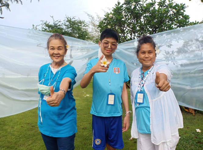 กลุ่มสีฟ้า ‘ความสงบ’ ทำทุกอย่างในความสงบ แข่งกันต่อแถวให้ยาวที่สุด ใช้อุปกรณฺ์ต่างๆ ที่หาได้โดยห้ามมีเสียง
