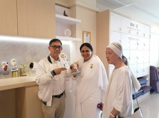ในการสนทนา แลกเปลี่ยนความรู้ในหัวข้อ จิตวิญญาณ คือรากฐานของความสงบ 16 ส.ค รับ Sr.Gopi จากสนามบินสุวรรณภูมิ ในการมาเยือนไทยครั้งแรก และเข้าสู่ที่พัก บ้านนันทวัน พร้อมมอบโทลี แก่ผู้ที่รอต้อนรับ ในบรรยากาศที่อบอุ่น เพื่อพักค้าง 1 คืน ก่อนออกเดินทางไปสนามบินสุวรรณภูมิ เพื่อเดินทางต่อไปยังอินโดนีเซีย