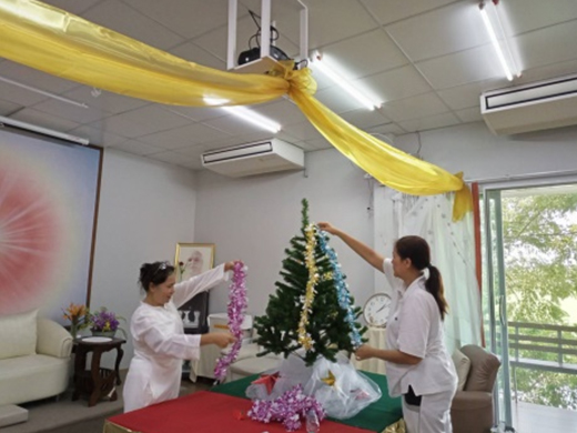 17 ธ.ค. เตรียมงานครอบครัวดวงดาว จัดสถานที่เตรียมงานสร้างบรรยากาศ คุณแม่ทั้งสามขมีขมัน ปั้นแต่งต้นไม้เพื่อใช้ประดับประดาดวงดาว