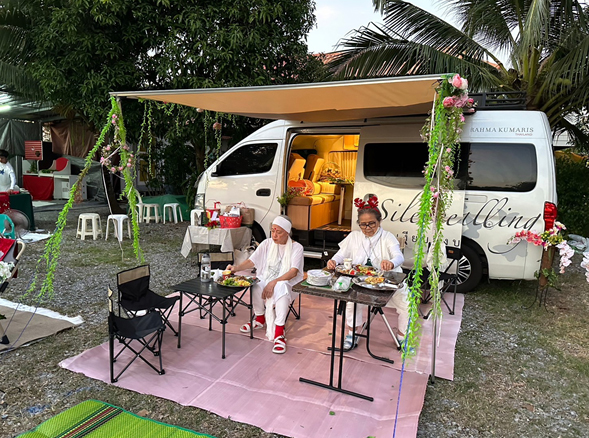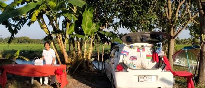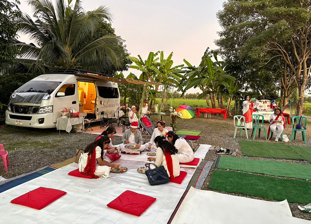 ส่วนพี่หล้าพำนักในรถบ้านพร้อมห้องน้ำส่วนตัว