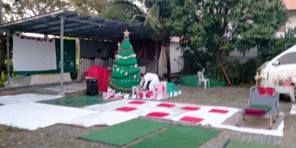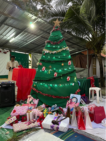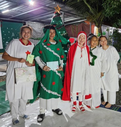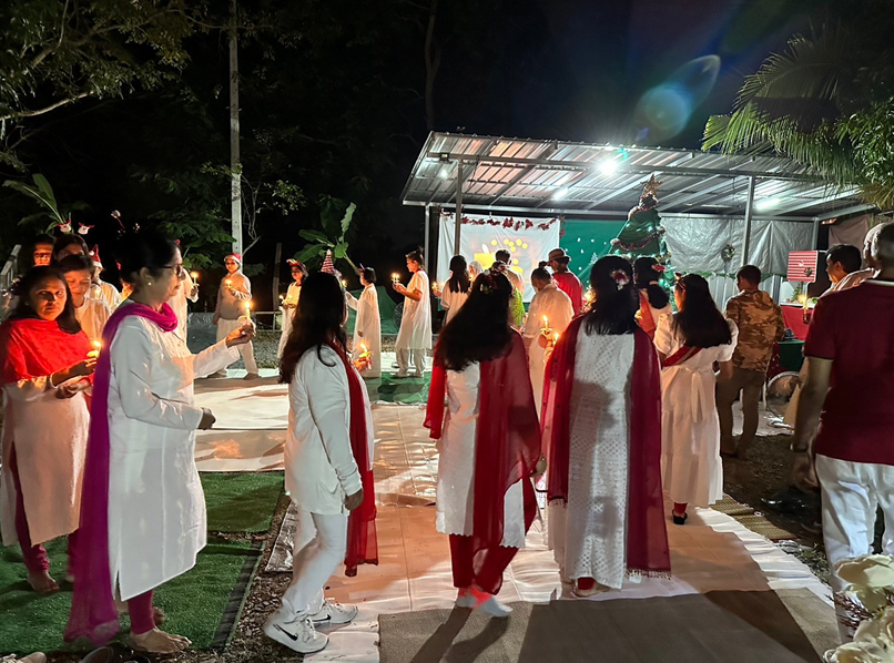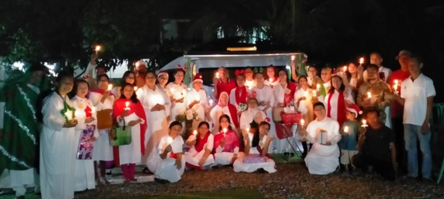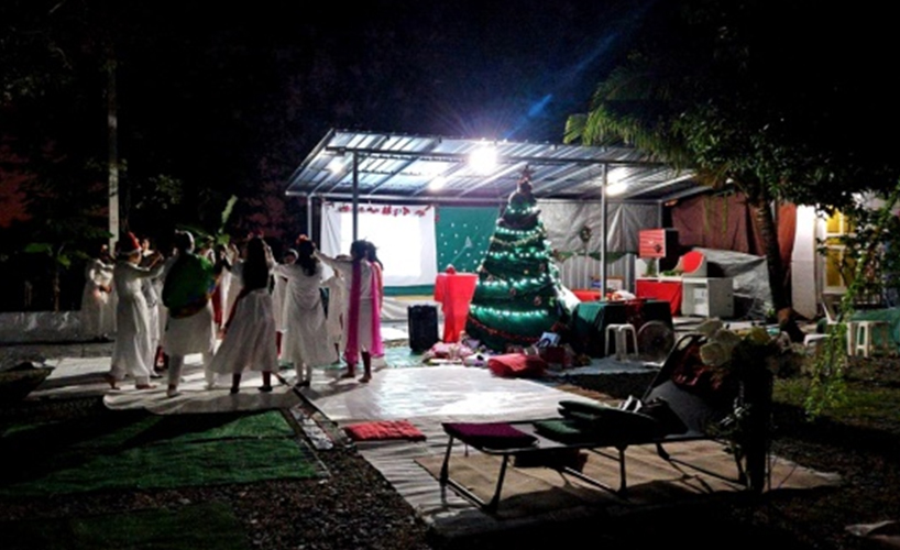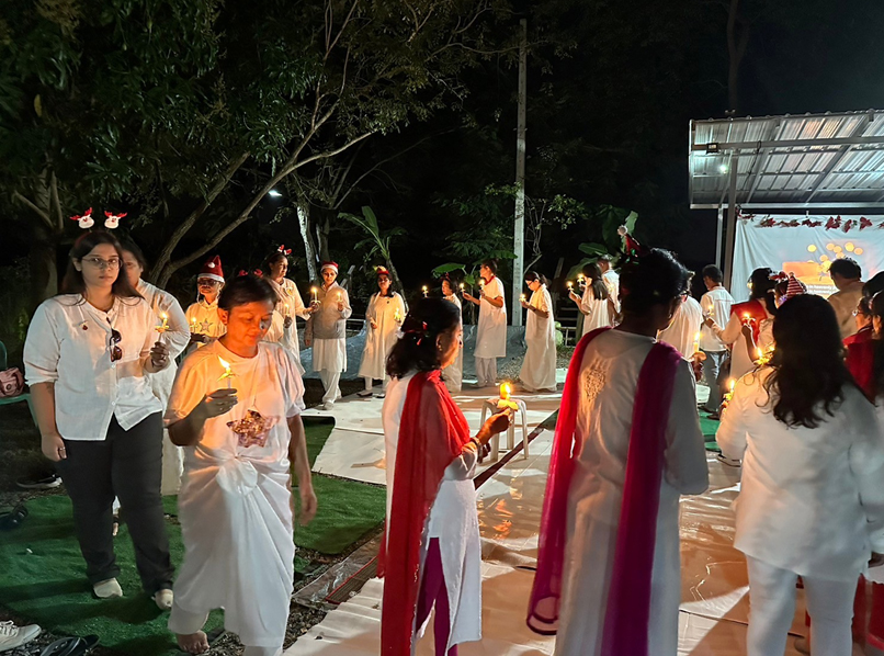 พลบค่ำ จุดเทียน – จุดแสงสว่างทางจิตด้วยเสียงเพลง Silent Night, Holy Night เดินวนรอบเพื่อมอบสายตาของความเป็นพี่น้องและความปรารถนาดีให้แก่กันก่อนรับแจกของขวัญจากผู้ช่วยพ่อซานต้า ระบบเสียง ระบบภาพบนจอ เลียนแบบหนังกลางแปลง ในบรรยากาศภูธรให้ครอบครัวคนงานที่มาร่วมรายการ รับของขวัญและชมภายนตร์ ‘ฉันคือใคร’ตอนจบ