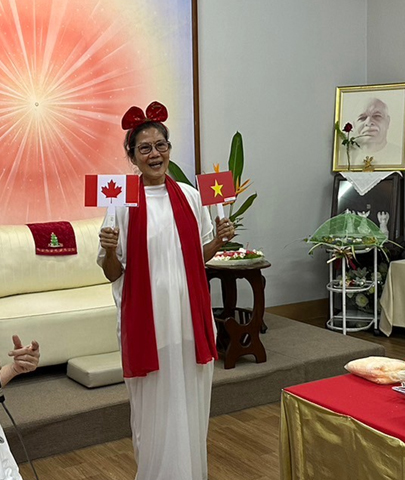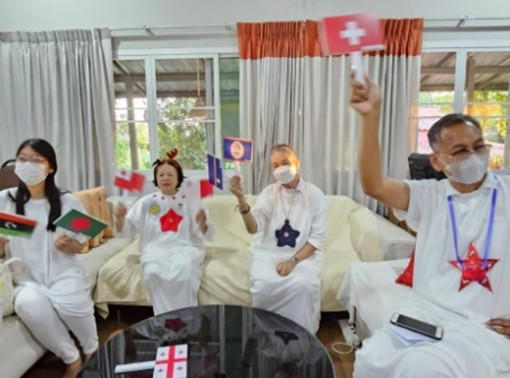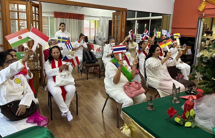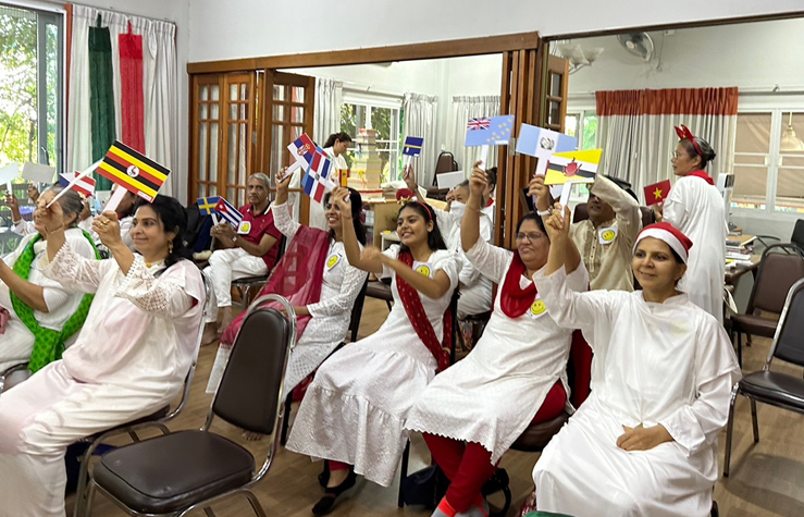 เราฉลองกับครอบครัวชาวโลกด้วยกิจกรรมเชื่อมโยงกับประเทศต่างๆ โดยให้ทุกคนเลือกธงประเทศจากสีที่ชอบ แล้วพูดถึงคุณสมบัติที่ดีงามของแต่ละประเทศนั้น