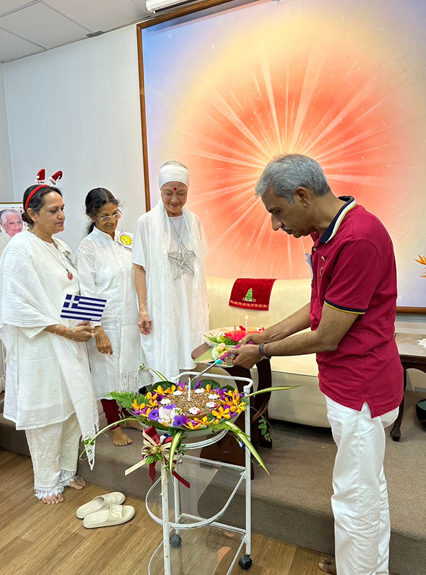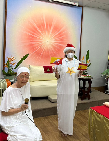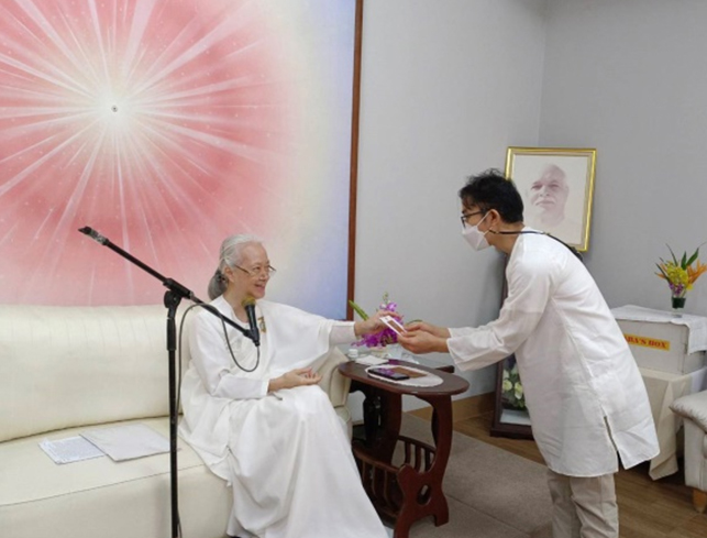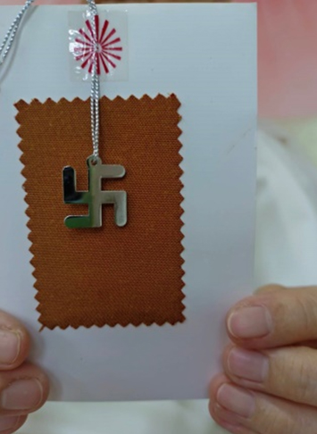 9 ธ.ค. มอบพร ในเครื่องหมาย ‘สวัสดิกะ’ ให้อาจารย์เปี๊ยกที่มาจากพิษณุโลก ถึงนครปฐมด้วยคุณธรรม ‘เป็นสุข’ จึงเน้นความสุขจาก ‘สวัสดิกะ’ เครื่องหมายแห่งความเป็นสิริมงคลเมื่อได้ค้นพบตัวตนที่แท้จริงในวงจรที่เป็นนิรันดร์ เรียกกันว่าเป็น ผู้ควงกงจักรของการสำนึกรู้ในตนเอง (Spinner of the discus of self-realization หรือ Swadarshan chakradari)