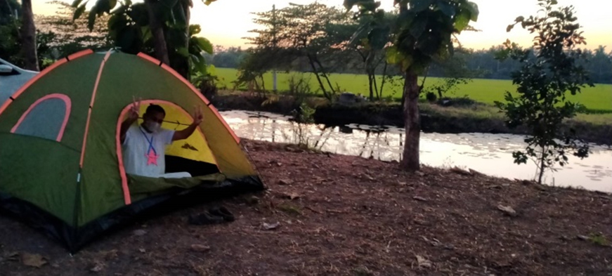 พี่วิชญ์กางเต็นท์ เสริมบรรยากาศของธรรมชาติบ้านโอม