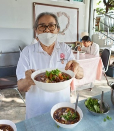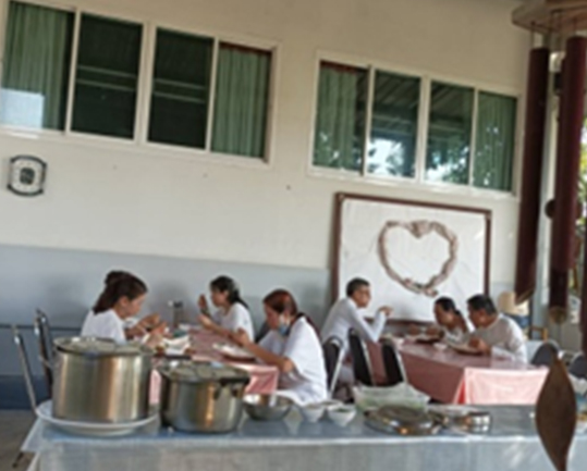 ถึงเวลารับประทานอาหารเย็น ทีมงานพร้อมเสิร์ฟน้ำและบาบีคิวจากมุมความสงบ PEACE