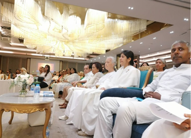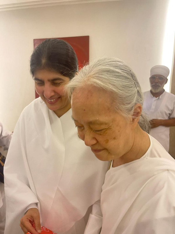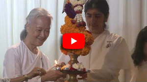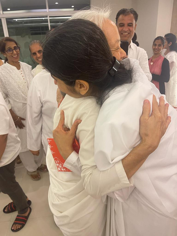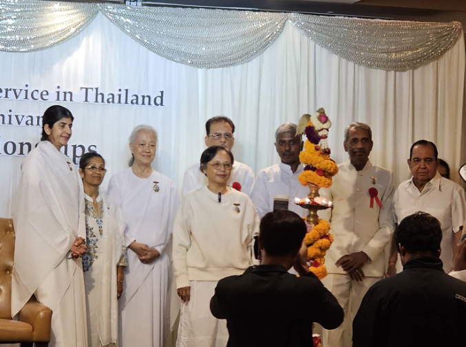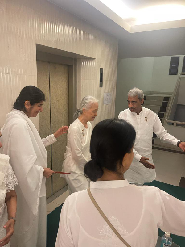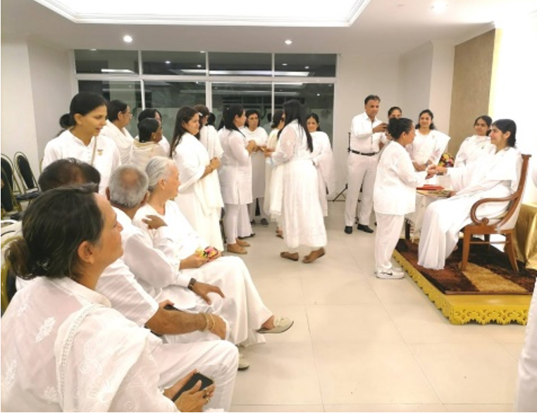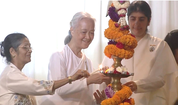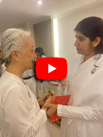 Sr.Shivani ทักทาย Sr.La ขณะที่โอบกอด 'This's because of your tapasya' "นี่เป็นเพราะ การบำเพ็ญเพียรของเธอ"ถ้อยคำที่รู้ค่าการบำเพ็ญเพียรเผากิเลส นี้เกี่ยวโยงกับการเป็นผู้นำในการเปิดศูนย์ราชาโยคะของบราห์มา กุมารีทั่วโลก ซึ่งเปรียบเหมือนการก่อไฟบูชายัญเพื่อสังเวยกิเลส อันเป็นเหตุของอุปสรรคและปัญหานานับประการ ในการสร้างความเป็นหนึ่งเดียวกัน ด้วยพลังสัจจะ นี่คือกระบวนการสร้างโลกใหม่ที่สวยงามในยุคแห่งสัจจะ ด้วยการ...