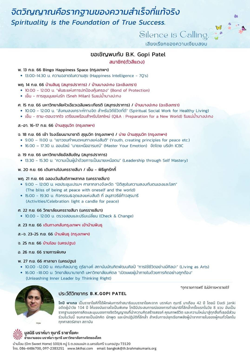 โดยเฉพาะอย่างยิ่ง ในรายการฉลองวันสันติภาพสากล 21 กันยายน 2566