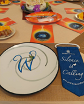 ผ้าคลุมสำหรับมอบให้แขกพิเศษอยู่ที่เก้าอี้เพื่อเตือนใจให้เห็นความสำคัญของ 'Silence'