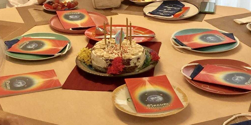 เปิดตัว ของขวัญ จานผีเสื้อ / แบ่งปันความรู้สึกต่อตัวอักษรที่เลือก /ตัดเค็ก ก่อนรับประทานอาหาร พี่ La ขอให้แต่ละท่านแนะนำตัวด้วยความรู้สึกและความหมายที่ดีของตัวอักษรที่ได้ เริ่มด้วย พี่ La ได้ S(Silence) เจ้าของวันเกิดเดือนพฤศจิกายนร่วมฉลองวันเกิดและร่วมโต๊ะอาหาร ที่บ้านเปรม ญาติสายหัวใจ : พี่แดง (เพ็ญพรรณ วังวิวัฒน์) , พี่แขก ญาติสายจิตวิญญาณ : พี่เอ๋, พี่แดง, น้องโบว์ลิ่ง ญาติสายโลหิต : พี่แจ๋