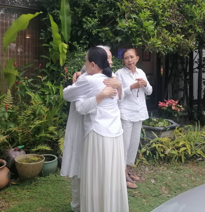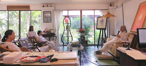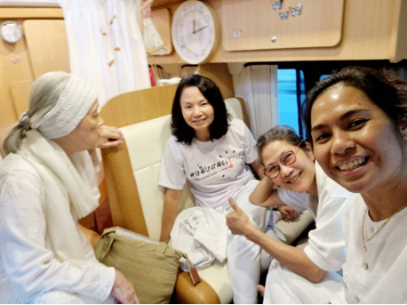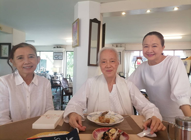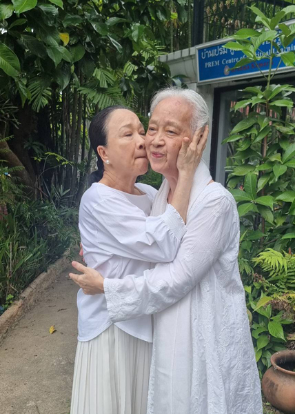 ความรู้สึกของพี่ที่มีต่อน้อง จากตอนเริ่มต้น พี่รู้สึกว่าทำไมหล้าไม่มาช่วยพี่เลย ทำไมไม่ช่วยดูแลแม่เลย มันก็นาน ทำให้พี่รู้สึกว่า มันอะไรกันนักกันหนา คือเธอจะอะไรกับศาสนาของเธอขนาดนั้น อันนี้ก็เป็นหน้าที่หนึ่ง ทำไมเธอไม่มาช่วยกันดูแล ในความรู้สึกของพี่ตอนนั้นนะ มันเป็นอะไรที่พี่รู้สึกว่าลบ ลบทุกครั้งที่หล้าอยากจะมา หรืออะไร จะมาก็มา พี่อยากไปพี่ก็กลับกรุงเทพฯ พี่จะ อะวอย (avoid-หลีกเลี่ยง)ที่จะเจอะกัน จนวันหนึ่งหล้ามาและพี่อยู่ พี่ก็ถ่ายรูปหล้าเข้าไปหอมเจ้าคือหอมคุณแม่ แล้วพี่ก็ส่งไปให้ญาติพี่ คือพี่หนูดู พี่หนูเห็นหล้า จำหน้าไม่ได้ พี่หนูเห็นพวกเรามาตั้งแต่เด็ก บอกคนนี้หล้าเหรอ บอกโอ้ แจ๋พี่จะบอกให้นะ หล้าน่ะเขามีพลังบวก ชนิดที่แบบอย่างเต็มมาก พี่เข้าใจล่ะ มองอย่างนี้พี่เห็นเลยว่า หน้าที่ของหล้ากับแจ๋นั้นต่างกันนะ พี่เห็นชัดเลยว่าหล้าก็เป็นคนที่มาดูแลวิญญาณของเจ้า คือดวงวิญญาณของแม่ แต่หน้าที่ของพี่คือดูแลร่างของแม่ พี่จะเป็นคนที่จะอาบน้ำ สีฟัน ล้างก้น คือทุกอย่างในร่างกายของเจ้า พี่ทำให้หมด แต่หล้าเป็นคนที่ไม่เคยทำ แต่หล้าจะมาถึงแล้วก็มากอด หล้าจะมาหอม เหมือนหล้ามาเพิ่มพลังอีกเวย์(way)หนึ่ง ซึ่งพี่ไม่ได้ทำ ซึ่งเป็นสิ่งที่พี่ เมื่อก่อนไม่รู้สึก ครั้งหนึ่งพอพี่หนู ญาติพี่คนนี้ ซึ่งเป็นลูกเจ้าเหมือนกัน และพี่หนูเป็นโหรหลวงด้วย พี่หนูก็เป็นประเภทแบบว่าจะมีสัมผัสกับอะไรเหล่านี้ โอ้ หล้าไม่ใช่ธรรมดานะ พี่ก็ปิ๊งในความรู้สึกของพี่ว่า ออ พี่ไปเข้าใจน้องผิดตลอดเวลา มนุษย์เราไม่ได้มีหน้าที่เหมือนกันทุกคน ต่างคนต่างมีหน้าที่ของใครของมัน พี่ต้องขอโทษเขานะ วันหนึ่งที่เจอกัน ไปกอดน้อง ขอโทษ คือพี่เข้าใจผิดหล้ามาตลอด (คลิกอ่านต่อ)