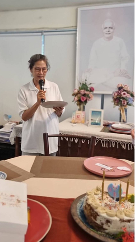 ประสบการณ์ ฉลองวันเกิด 17 พ.ย. ณ บ้านเปรม เชียงใหม่ พี่แดง แดงได้รู้จักและใกล้ชิดพี่หล้าและครอบครัวของพี่หล้าเกือบสิบปีแล้ว แม่เจ้าเปรียบเป็นแม่ของแดง พี่หล้า พี่แจ๋ พี่สาวแสนสวยและพี่จ๊ะพี่ชายที่แสนดี ทุกครั้งที่พี่หล้ากลับบ้านแดงก็มีโอกาสได้เข้าไปเยี่ยมแม่เจ้าและได้พบพี่แจ๋อยู่เสมอ พี่แจ๋น่ารักและกรุณาต่อแดงมากจัดเตรียมที่หลับที่นอนให้ แดงได้รับความอบอุ่นมาก ขอขอบพระคุณแม่เจ้า พี่แจ๋และพี่จ๊ะมา ณ.โอกาสนี้ ที่สำคัญแดงได้รู้เห็นเป็นพยานรักระหว่างพี่แจ๋และพี่หล้า ครั้งหนึ่งพี่แจ๋เข้ามาโอบกอดพี่หล้า แสดงความรัก พูดความในใจอย่างตื้นตันใจที่เมื่อก่อนไม่เข้าใจน้อง คิดว่าน้องไม่สนใจครอบครัว ไม่มาอยู่ช่วยกันดูแลแม่ แต่ตอนนี้พี่เข้าใจน้องแล้ว พี่ขอโทษด้วย ทำให้แดงน้ำตาคลอ ซาบซึ้งและสุขใจไปด้วย (คลิกอ่านต่อ) เหมียว ฉันมีโอกาสร่วมฉลองวันคล้ายวันเกิดพี่หล้า อายุ 72 ปี วันที่ 17/11/23 ณ บ้านเปรม เชียงใหม่ แล้วถือโอกาสนี้ฉลองวันเกิดทางจิต ฉัน ครบ 10 ปี ของการเกิดการตื่นรู้ด้วยปัญญาที่รับฟังสัจจะ นำมาปฏิบัติและฝึกฝนตนเอง บนหนทางความรู้นี้ ฉันรู้สึกถึงความสุขและซาบซึ้งของการได้พบปะของสายใยที่ยิ่งใหญ่ ที่มาจากการได้รับความเติมเต็มความปรารถนาของพี่หล้า การได้พบกันกับผู้เป็นสายใจ สายโลหิต สายจิตวิญญาณ คือเพื่อนรัก พี่สาว และพี่น้องทางจิต ได้ร่วมแสดงความยินดีภายใต้บรรยากาศที่เป็นเช่นพร และแบ่งปันความรู้สึกดีๆที่มาจากใจ จากของขวัญ สัญลักษณ์รูปผีเสื้อคู่กับอักษรอักษร a ถึง z ที่วาดลงไปบนจานกระเบื้อง (คลิกอ่านต่อ) ต่าย รู้สึกประทับใจ และตื้นตันใจอยู่ภายใน ที่ตนได้ร่วมเป็นพยาน ในการเฝ้าซึมซับสิ่งที่มีคุณค่าภายในและสังเกตการณ์ในทุกสิ่งที่เกิดขึ้นที่บ้านเปรมครั้งนี้ แม้เป็นกิจกรรมชุมนุมเล็กๆ แต่ตนก็รู้สึกว่า เมื่อเป็นงานรับใช้ของบาบา ซึ่งบาบากำลังดลใจเราแต่ละคนที่เป็นเครื่องมือให้ก้าวเดินต่อเนื่องไป ดังนั้นทุกสิ่งที่เรามีโอกาสได้ร่วมทำก็ถือเป็นโชคอย่างยิ่ง เมื่อได้เห็นครอบครัวสายใจ-สายโลหิตของพี่หล้าที่เข้าร่วมกิจกรรมครั้งนี้ ที่ทุกคนมาด้วยความตั้งใจและมาร่วมสร้างกระแสบรรยากาศที่อบอุ่นเป็นครอบครัว (คลิกอ่านต่อ) พี่ศรี