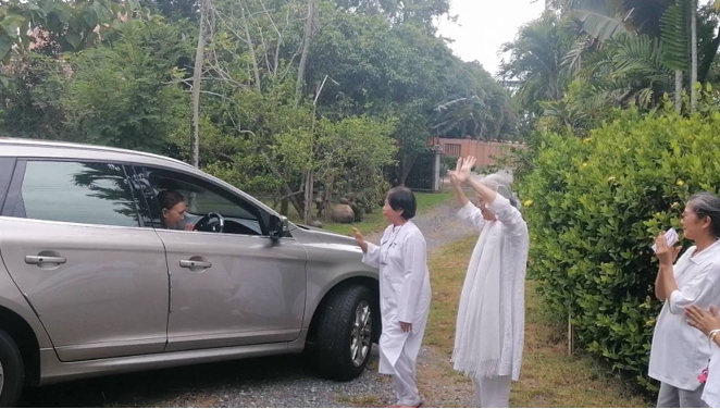 พี่แจ๋ร่ำลาและติดผีเสื้อในรถบ้าน ให้เป็นสิริมงคลในการนำพา 'ความเงียบสงบ' จากภายในสู่มวลชนทั่วทุกหนแห่ง