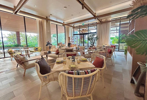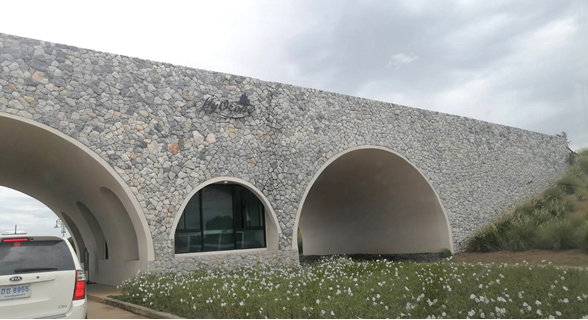 At their Patom Organic Cafe, 'Reflection from the window is their signature for showing Famous triangle Pagoda 'Patom Jedi'
