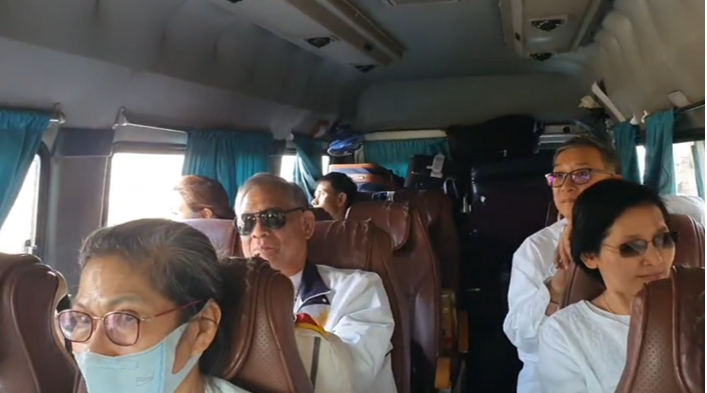Sr.La, พี่น้อย, พี่ธม นั่งรถคันเล็ก ส่วนคณะ 11 คน นั่งรถ Bus ด้วยกัน