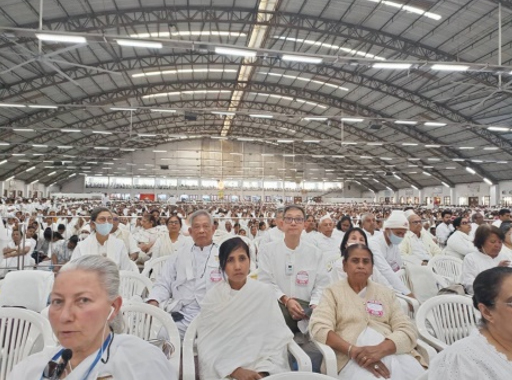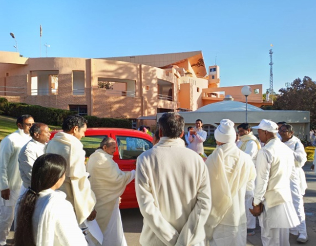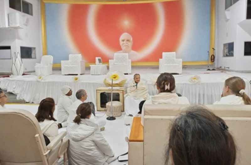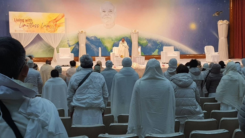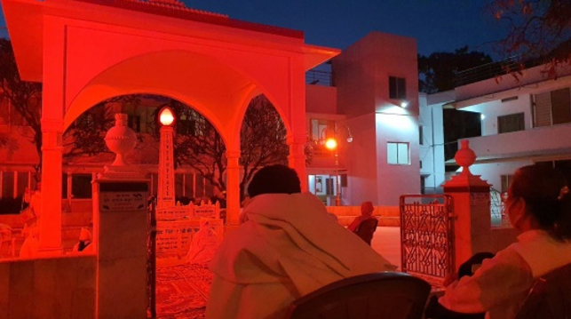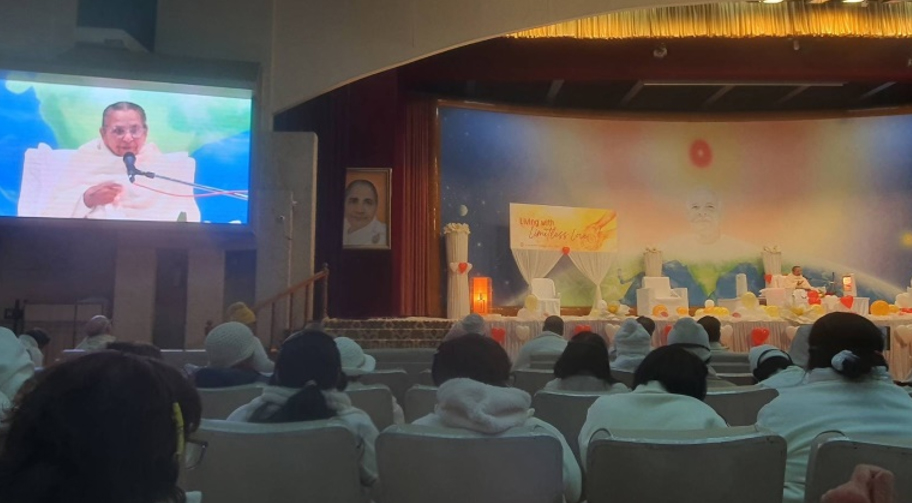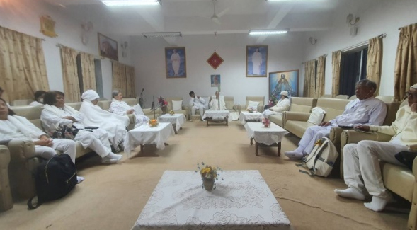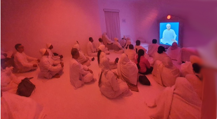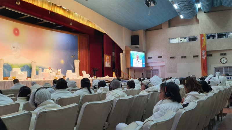 ตอนเย็นมีรายการพบปะ Avyakt BapDada ที่ห้องประชุม Diamond Hall บริเวณเชิงเขา ณ ชานติวัน