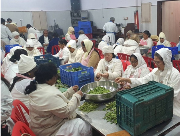 นักเรียนบางคน เข้าไปช่วยเตรียมผักในห้องครัวสำหรับหล่อเลี้ยงสมาชิกจากทั่วโลก
