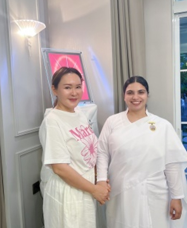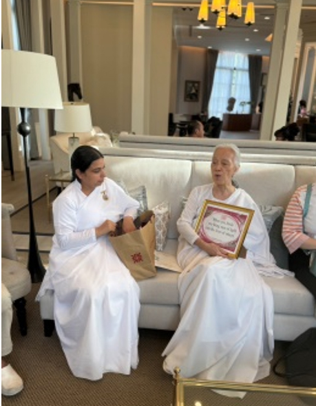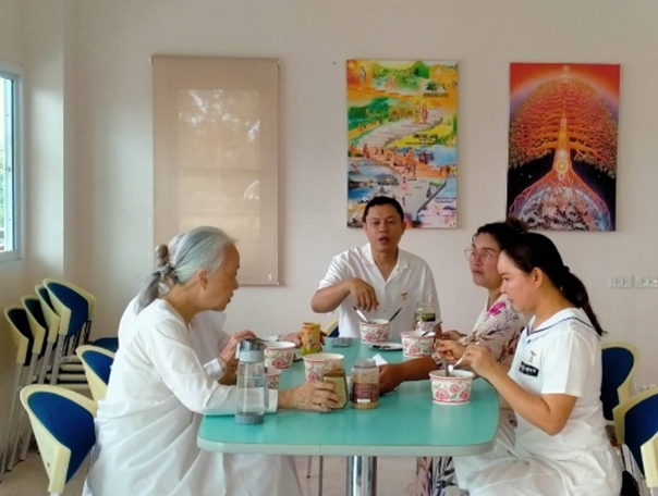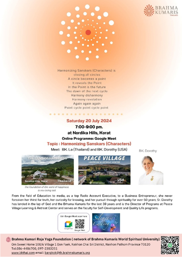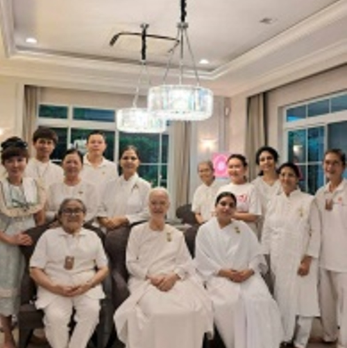ครอบครัวทางจิตร่ำลา Sr.Shweta ฝ่ายบริหารศูนย์การฟื้นฟูชีวิต โอมชานติ (ORC-Om Shanti Retreat Centre) ใกล้กรุงเดลี, อินเดีย หลังจากใช้เวลาทำงานรับใช้ช่วยเหลือศูนย์สุขุมวิทมากว่า 3 เดือน ซึ่งทำให้มีโอกาสเยี่ยมเยือน ศูนย์ราชาโยคะที่ต่างๆในประเทศไทย พร้อมกันวันนี้เราเชิญแขกพิเศษ แพทย์หญิง นภิสวดี ว่องชวณิชย์ โรงพยาบาลเมดพาร์ค ที่กำลังจะเดินทางไปร่วมรายการที่ศูนย์การฟื้นฟูชีวิตโลก ที่เมืองออกซ์ฟอร์ด (GRC-Global Retreat Centre, Oxford) ประเทศอังกฤษกับพี่สุทธิ(อ.สุทธิ มโนกิจจรูญมั่น) เรามีการแบ่งปันคุณธรรมประจำตัวและแลกเปลี่ยนของที่ระลึก พร้อมกับรับประทานอาหารเย็น