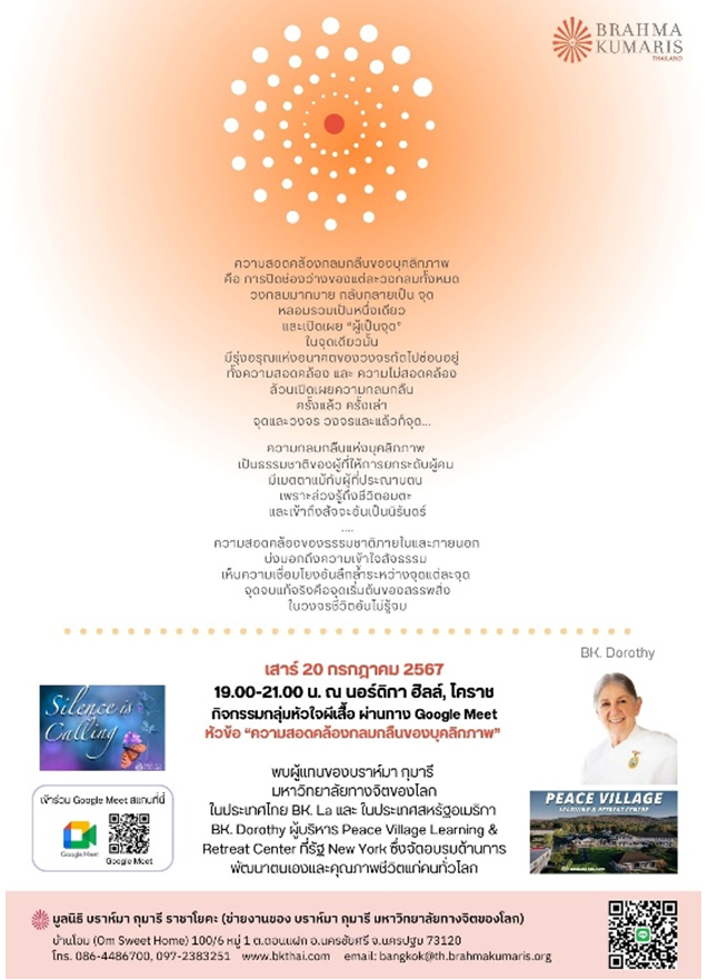 กิจกรรมออนไลน์ คืนวันที่ 20 ก.ค. (เสาร์ที่ 3 ของเดือน) ผ่าน Google Meet ‘ความสอดคล้องกลมกลืนของบุคลิกภาพ’