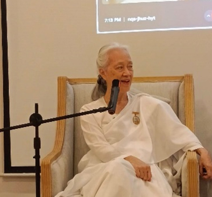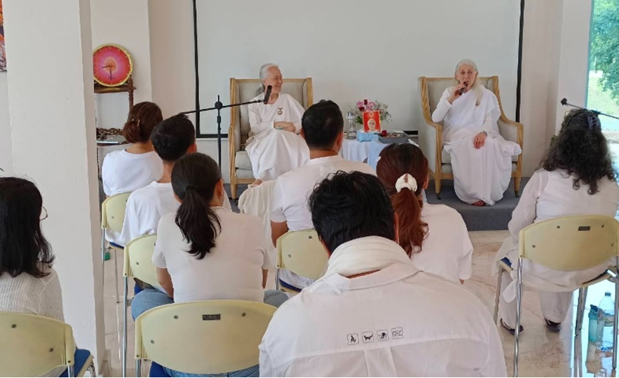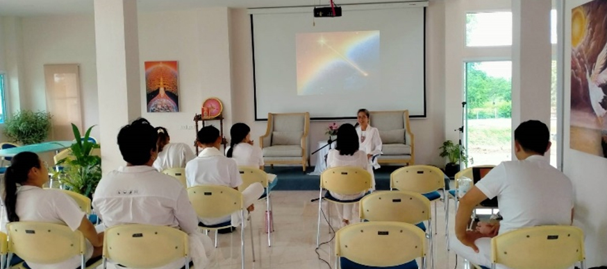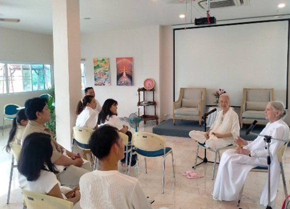 ซิสเตอร์ทักทาย แบ่งปันความรู้ และเปิดโอกาสให้ผู้ที่กำลังรับบทเรียนราชาโยคะ ถาม-ตอบ