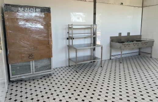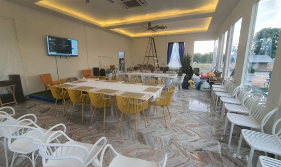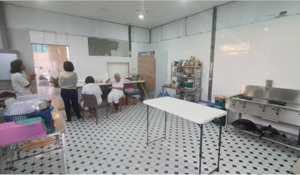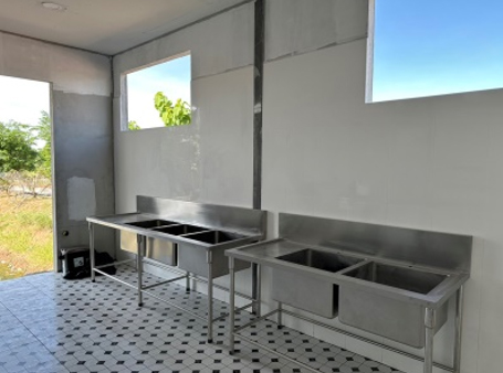 ห้องครัวใน Eating Well Café ที่ยังเร่งงานก่อสร้างอยู่