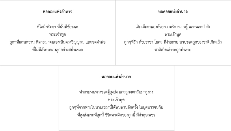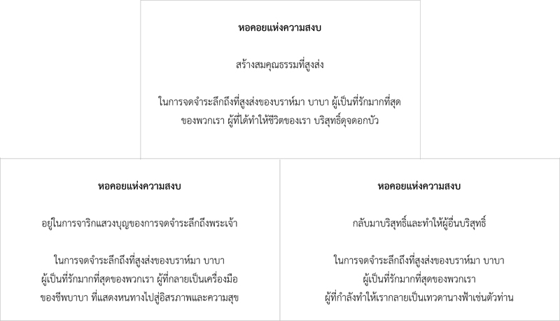 โดยมีการแจกบัตรสาระของหลักการต่างๆ ไว้ในซองเอกสาร ให้ทุกท่านได้อ่านประกอบในแต่ละจังหวะ