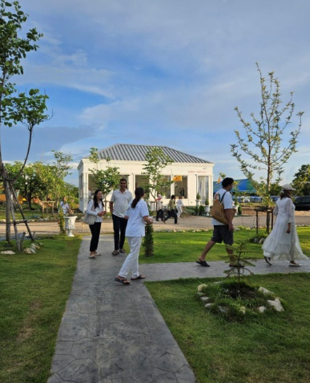 ด้วยธรรมชาติที่สวยงาม ท่ามกลางหุบเขาและความเขียวขจีของต้นไม้โดยรอบ เสริมความสดชื่น สบายตา สบายใจ ในการร่วมกันสร้างอาณาบริเวณนี้ ให้เป็นดินแดนแห่งความสงบ-สุข สมกับปรารถนาดีของเจ้าของที่จัดทำป้ายหินอ่อนต้อนรับที่ประตูทางเข้า