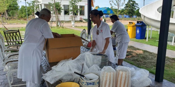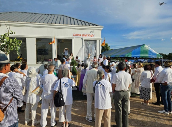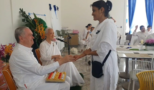 Br.Charlie และ Sr.Schwetta จาก ORC, India ได้ร่วมตัด Ribbon เพื่อเปิดประตูไปสู่โลกใหม่ตามหลักการทั้ง 10 พี่ปูตั้งชื่อ Café ว่า ‘Eating Well’ จากบัตรใบแรกที่ได้รับ(ในกิจกรรมสร้างโลกใหม่ร่วมกัน)