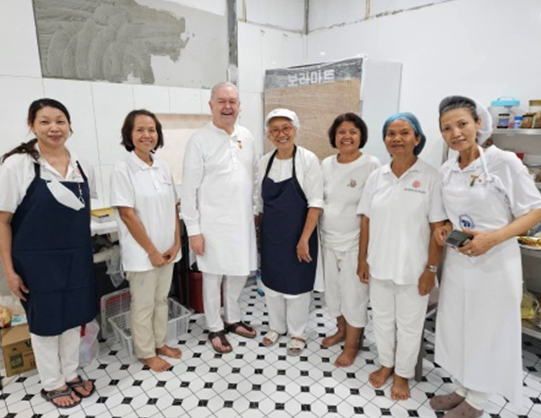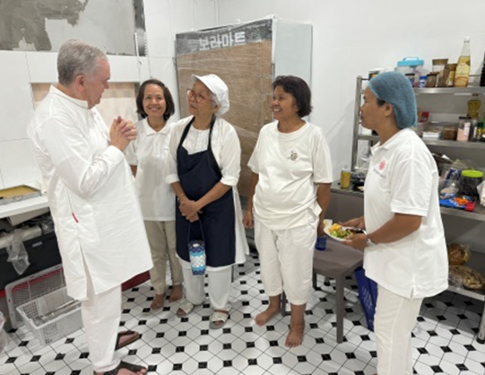 Br.Charlie ทักทายพี่ธมและทีมงานในห้องครัว