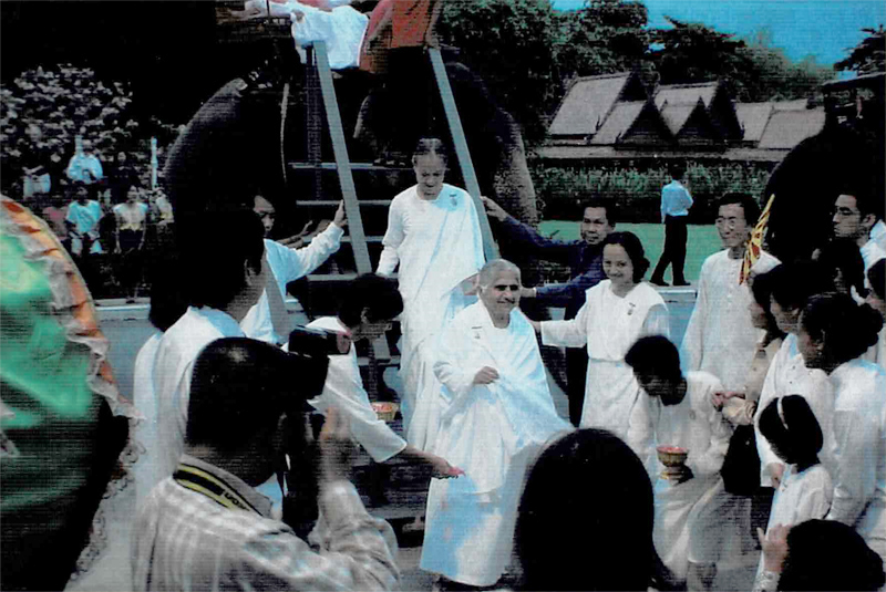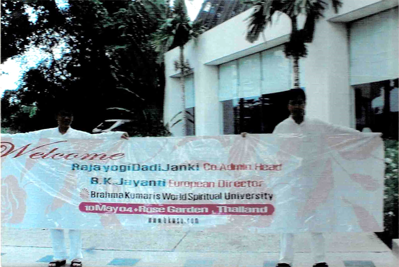 Experiences with Dadi Janki and Dadi Gulzar(English) ภาษาไทยเข้าไปดูใน หัวข้อการหล่อเลี้ยง บีเค ทั่วโลก ในโอกาสนี้ ขอให้คลิกชมจดหมายข่าว พฤษภาคม 2563 ในวันที่ Dadi Janki จากไป และ มีนาคม 2565 ในการเจริญพัฒนาด้านจิตวิญญาณของครอบครัวบราห์มินทั่วโลก บาบา(Baba) และละคร (Drama) ช่วยให้เราได้เรียนรู้ที่จะก้าวหน้าต่อไปไม่ลดละ ขอบคุณละครที่ทำให้ประเทศไทยมีฉากตอนอันน่าประทับใจ ในบทบาทที่สำคัญของดาดี้ แจงกี... ที่ได้เฝ้ามองดูการเปลี่ยนแปลงทุกระยะของ Sr.La เพราะรู้จักและเข้าใจบทบาท ในการเป็นเครื่องมือที่บาบาไว้วางใจให้เข้าใจความเป็นไปของละครด้วยหัวใจที่ซื่อสัตย์ Sr.La จึงปลุกเรียกพลังของความซื่อสัตย์ขึ้นมาอีกครั้ง...หลังมูร์ลีและรับฟังเสียงของดาดี้ (คลิกฟังเสียงของดาดี้) ดาดี้แจงกีประทับรอยเท้าอันศักดิ์สิทธิ์ของท่านไว้ ท่ามกลางครอบครัวทางจิต...ณ สวนสามพราน(Rose Garden) เป็นครั้งสุดท้ายในปี ค.ศ.2004 ตอบรับ...ทันทีที่ Sr.Jayanti แจ้งข่าวการแวะมาเยือนของดาดี้แจงกีภายใน 10 วัน ด้วยแรงรัก-ศรัทธา ว่า ทุกสิ่งเป็นไปได้...อย่างดีที่สุด ต้อนรับ...บริเวณโถง โรงแรม สวนสามพราน ใช้เพลงดอกกุหลาบทางจิต บรรเลงด้วย piano ที่ไม่ใช้ผู้เล่นจริง ขณะที่มอบดอกกุหลาบประดิษฐ์ให้ดาดี้ รายการสำหรับประชาชน Dadi Janki กำหนดให้ Sr.La ชึ้นนั่งช้างด้วยกันในขบวนแห่ จากหน้าโรงแรมถึงห้องประชุม(ภายใน 10 นาที) เพื่อมาพบแขก VIP กว่า 400 คน ต่อมาวันรุ่งขึ้น ก่อนเดินทางกลับ ดาดี้พบแขก VIP 100 กว่าท่าน ที่ ร.พ.กรุงเทพฯ สุขุมวิท ผู้ได้เชิญมารับฟังเรื่อง ‘พลังโยคะ’ เป็นพิเศษ ภาพประวัติศาสตร์กว่า 20 ปีนี้ เตือนใจว่า ทุกสิ่งที่ท่านคิดด้วยจิตที่บริสุทธิ์ ปัญญาที่สวามิภักดิ์ต่อสิ่งสูงสุด หรือองค์สัจธรรมที่มีชีวิตนั้นย่อมส่งผลในทางปฏิบัติ สัจจะนั้นพิสูจน์ตนเอง...ว่า พลังโยคะนั้นสามารถเผาบาปให้เรากลับมาบริสุทธิ์สมบูรณ์ จากการเพียรพยายามของมนุษย์ที่ต้องการหลุดพ้น(Liberation) และการหลุดพ้นในชีวิต(Liberation-in-life)