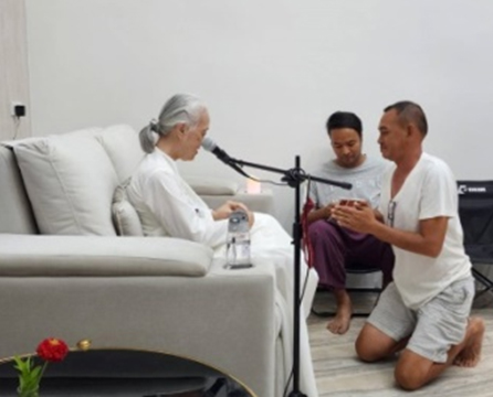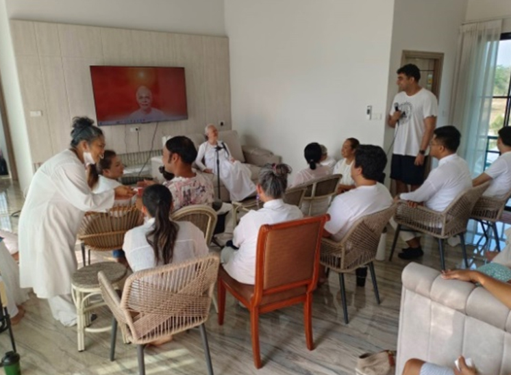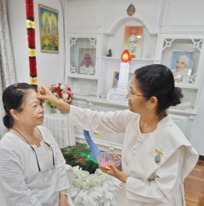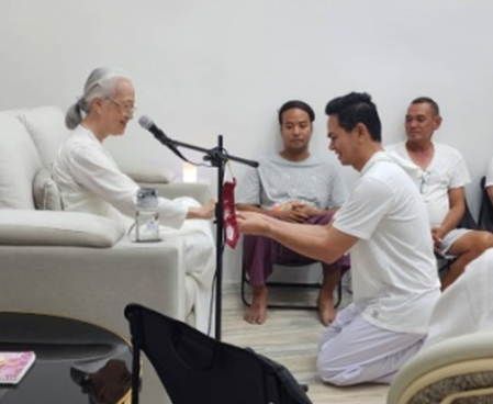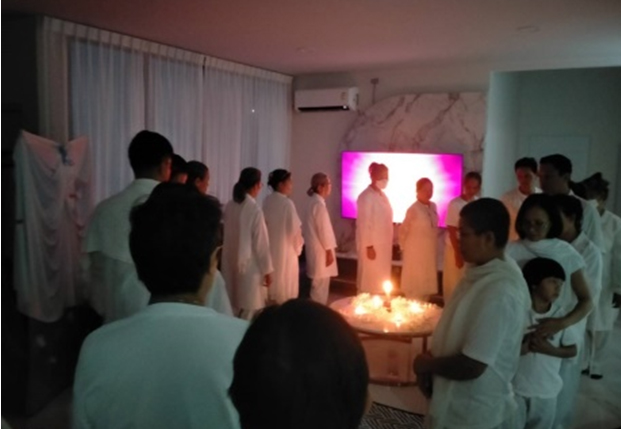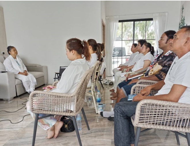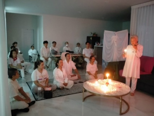 หลังป้อนอาหารของจิตวิญญาณ เราได้มอบขนมหวาน(โทลี) ครอบครัวทางจิต ใช้ชีวิตด้วยการฝึกภาษาตาประสานใจ ในสำนึกที่เป็นดวงวิญญาณ