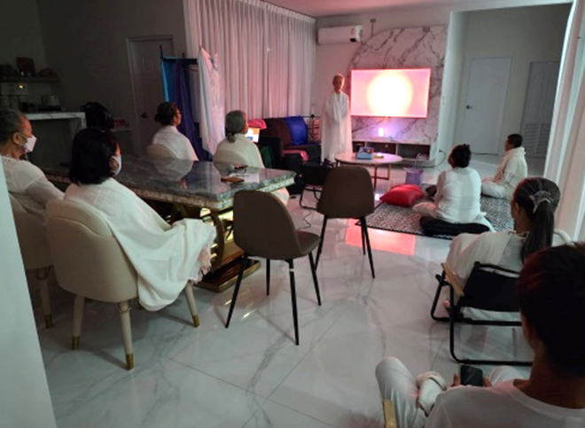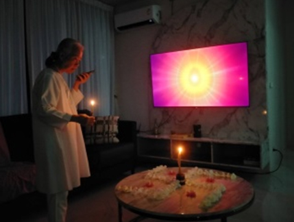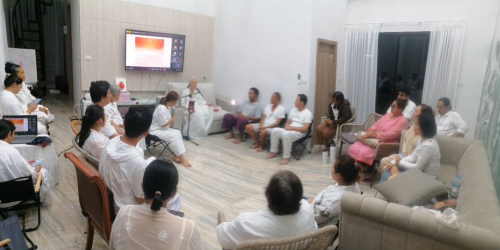 ตอนเย็นหลังชั่วโมงฝึกจิตเพื่อโลก(World Meditation Hours) เราปรับห้องและระบบเข้าสู่รายการ Google Meet เพื่อถ่ายทอดสดจากห้องหัวใจผีเสื้อที่มีการแลกเปลี่ยนเรียนรู้ที่จะเปลี่ยนแปลงตนเอง