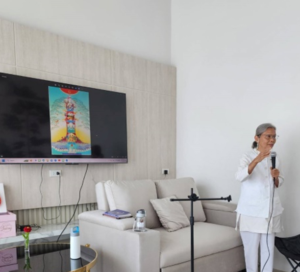 พี่ปูแบ่งปันประเด็นความรู้ที่สร้างเสริมความเป็นผู้นำจากภายในให้คุณประโยชน์ แก่เพื่อนฝูง ญาติมิตร ณ สถานที่พักอาศัยของตน พร้อมแรงศรัทธาของผู้เป็นมารดา ในการทำให้บ้านเป็นสถานที่ปฏิบัติธรรมในเวลาเดียวกัน