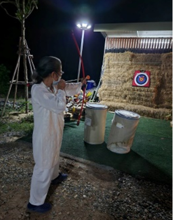 พี่ศรี กำลังฝึกซ้อม Sr.La ได้แสดงฝีมือยิงธนูลูกเดียวตรงเป้า จึงได้รับการยืนยันว่า มีธรรมชาติที่คล่องแคล่วว่องไว จึงถนัดการเล่นกีฬาประเภท ขี่ม้า ยิงธนู ฯลฯ รวมทั้งขับรถเร็ว(อาจคุ้นเคยกับการขับรถ sport )