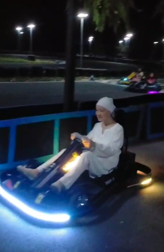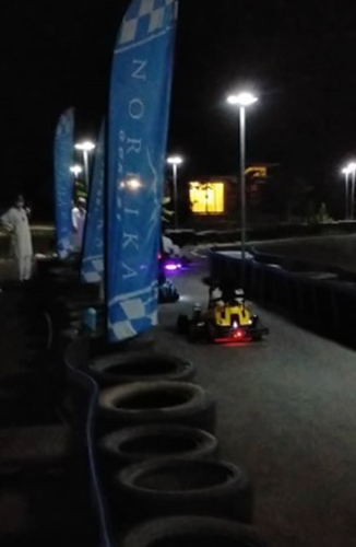 Sr.La ทดลองลงสนาม โกคาร์ท ในความเร็วธรรมดาบนเส้นทางที่มีแสงไฟ บางคนสนุกกับการฝึกทักษะเร่งความเร็ว และความฉวัดเฉวียนของรถที่ออกแบบล้อพิเศษ เมื่อมองมุมชีวิตทางจิตอาจเป็นโอกาสฝึกในสนามแข่งความเร็วของดวงวิญญาณด้วยพลังโยคะ เพื่อไปถึงจุดหมายปลายทางให้ทันเวลา! เป็นการแข่งกับตัวเองให้ไปถึงเป้าอย่างเป็นธรรมชาติ ไม่ประมาท ไม่ขลาดกลัวหรือตื่นเต้นเพราะเสียงเชียร์ ทุกเรื่องเริ่มต้นจากการควบคุมการทำงานภายใน ด้วยความเข้าใจ ความมั่นใจ ที่ให้ความเบิกบาน ในการใช้วัตถุธาตุ อย่างสร้างสรรค์ โดยไม่พิสูจน์ตน หรือผลงานใดๆ...แต่สนามแข่งนี้ พี่เคี้ยง(เจ้าของสนาม) ครองตำแหน่งแชมป์ตลอดไปในความเร็ว 24 วินาทีต่อหนึ่งรอบ คงยากที่จะทำลายสถิตินี้ได้ แต่ก็ขอบคุณที่ให้เราเล่นฟรีสำหรับความเร็วที่น่าเร่งกับของเล่นราคาแพงเช่นนี้(10 นาที = 350 บาท)…ลูกเด็กเล็กแดงสนุกสนานกันถ้วนหน้า