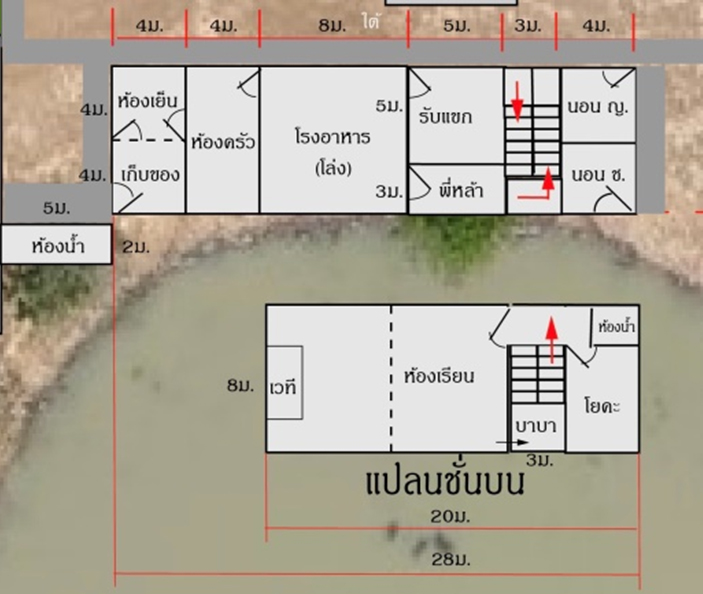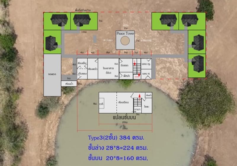 รูปแผนที่ของการจัดสรรพื้นที่ ซึ่งพี่ปู/พี่เคี้ยง พร้อมปรับเปลี่ยนทุกระยะ ให้เหมาะสมที่สุด ในการสร้างอาณาบริเวณแห่งความสงบควบคู่ไปกับหมู่บ้านแห่งความสุขนี้ ที่เรียกว่า Nordika… อันเป็นชื่อกลุ่มชาวยุโรปเหนือ เรียก Nordic อยู่แถบสแกนดิเนเวียน ซึ่งมีฟินแลนด์ ครองตำแหน่งประเทศที่มีความสุขที่สุดในโลก เมื่อพี่ปูได้คิดคร่าวๆ ตั้งแต่ก้าวแรกของการจัดวางพื้นที่ ก็มีเรื่องปรับเปลี่ยนไปเรื่อยๆ จากชั้นเดียว เป็นสองชั้น แม้อาจเพิ่มการลงทุนฐานราก