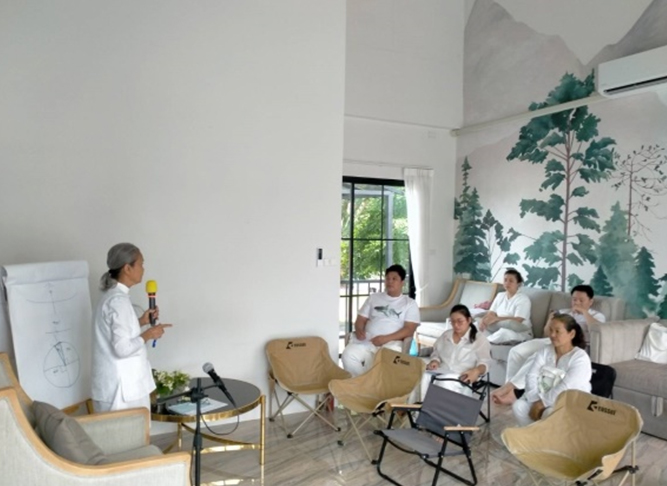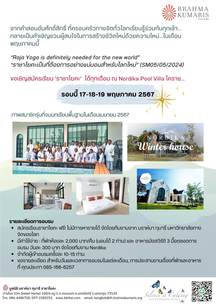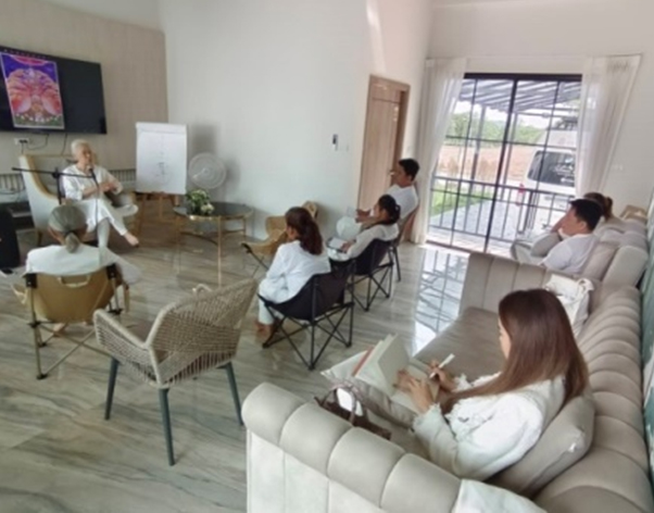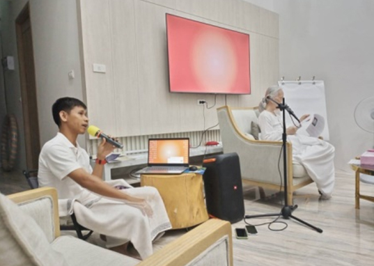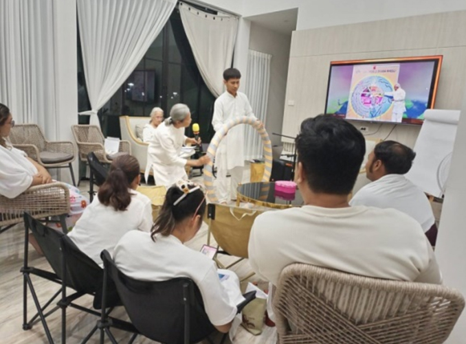 โดยมีพี่น้องทางจิตร่วมแบ่งปันประสบการณ์ของราชาโยคะ เพื่อสร้างบรรยากาศของการเรียนรู้และเติบโตร่วมกันในชุมนุม ทั้งนักเรียนประจำและผู้ที่กำลังรับบทเรียน